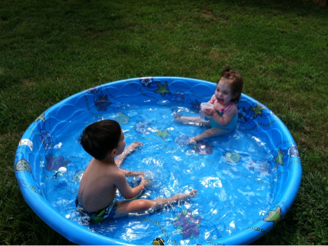 She does opposite of what is said. In the pool we say sit down, she tries to stand up. We say no, she continues to lean over the side of the pool. She splashes, Dylan cries, she laughs and splashes more. How opposite my babies are!!!